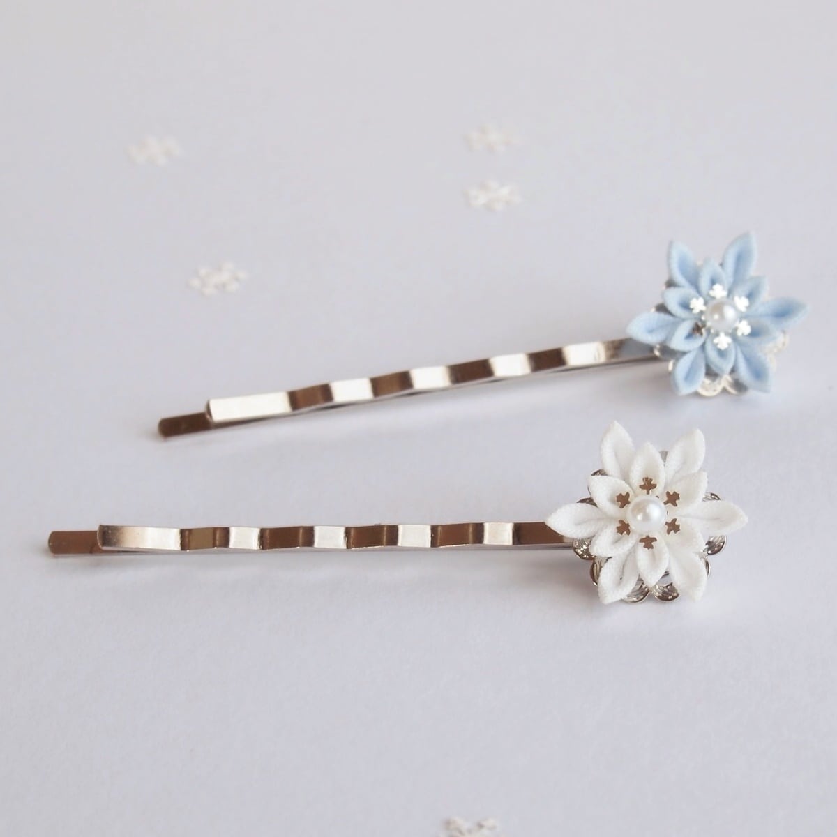 Tsumami zaiku/Tsumami craft/Japanese traditional craft/つまみ細工/花/和/和風/洋/洋風/着物/和装/袴/浴衣/入学式/卒業式/成人式/結婚式/ウエディング/普段使い/特別な日/記念日/誕生日/夏祭り/縁日/クリスマス/バレンタイン/春/夏/秋/冬/フラワー/ギフト/プレゼント/贈りもの/贈り物/大人可愛い/綺麗/シルバー/クリスタル/ゆらゆら/揺れる/ゆらゆら揺れる/クリスマスギフト/青/ブルー/blue/白/ホワイト/white/桃色/ピンク/pink/スノー/snow/カラーバリエーション/クリスマスイヴ/クリスマスイブ/髪飾り/ヘアアクセサリー