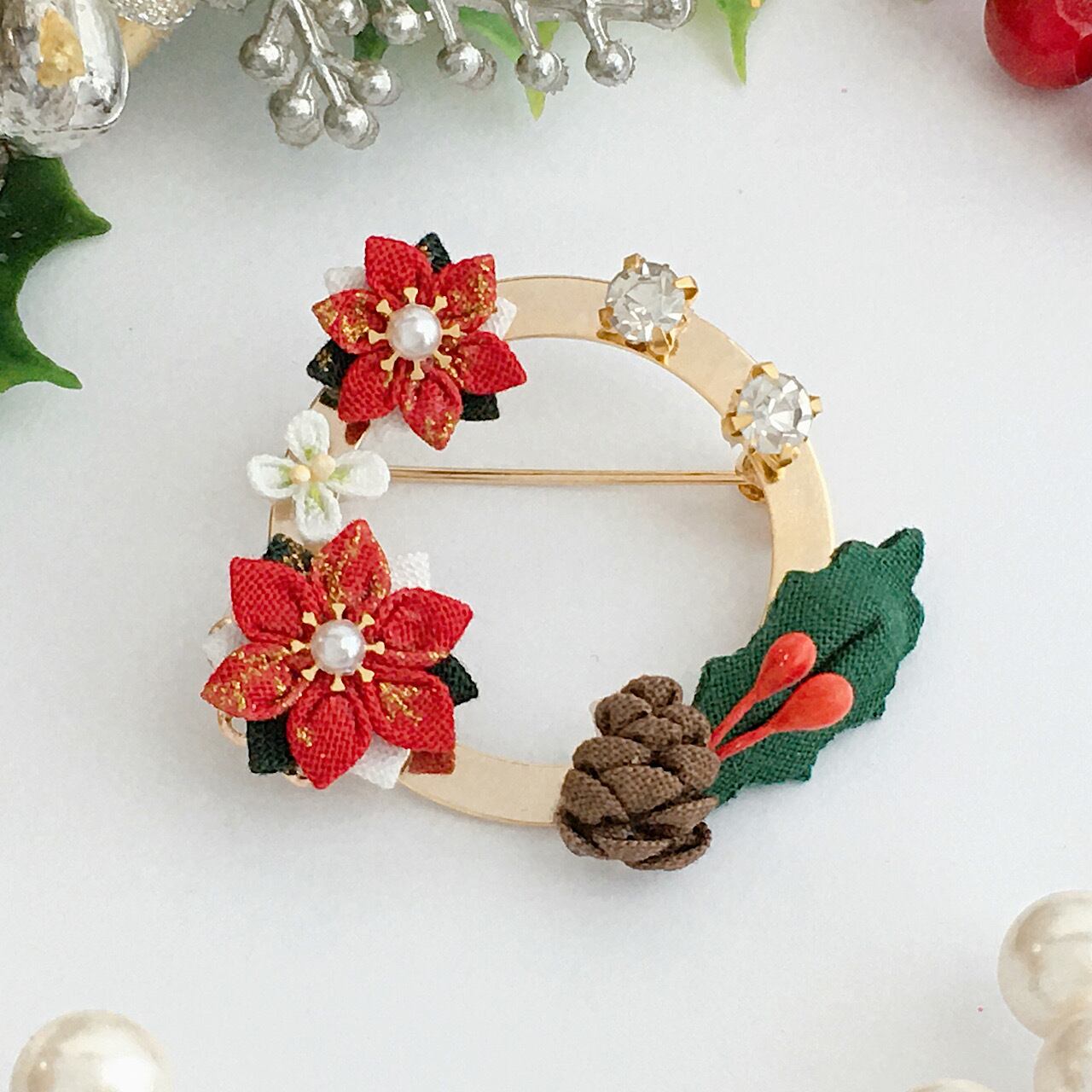 つまみ細工のポインセチアをあしらった