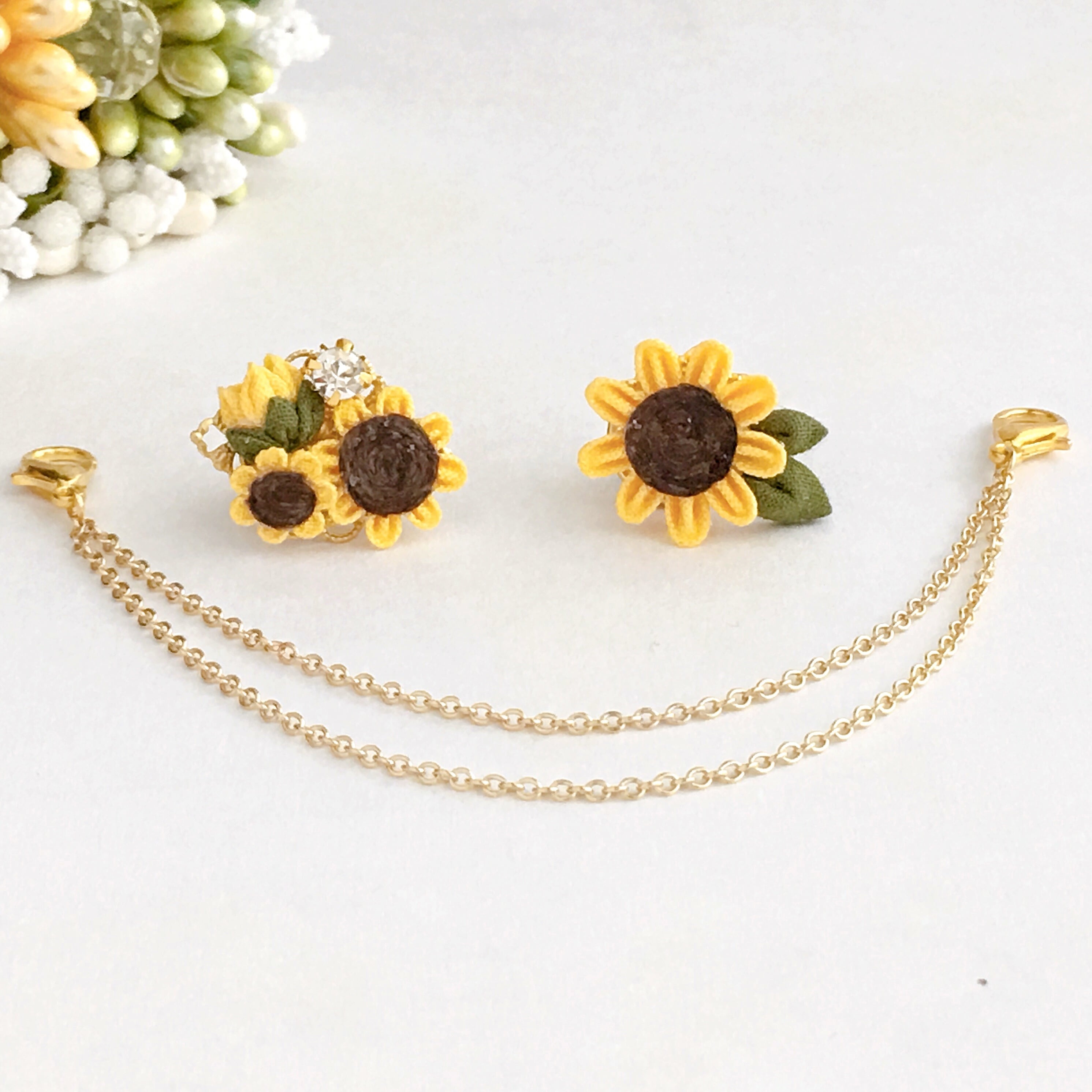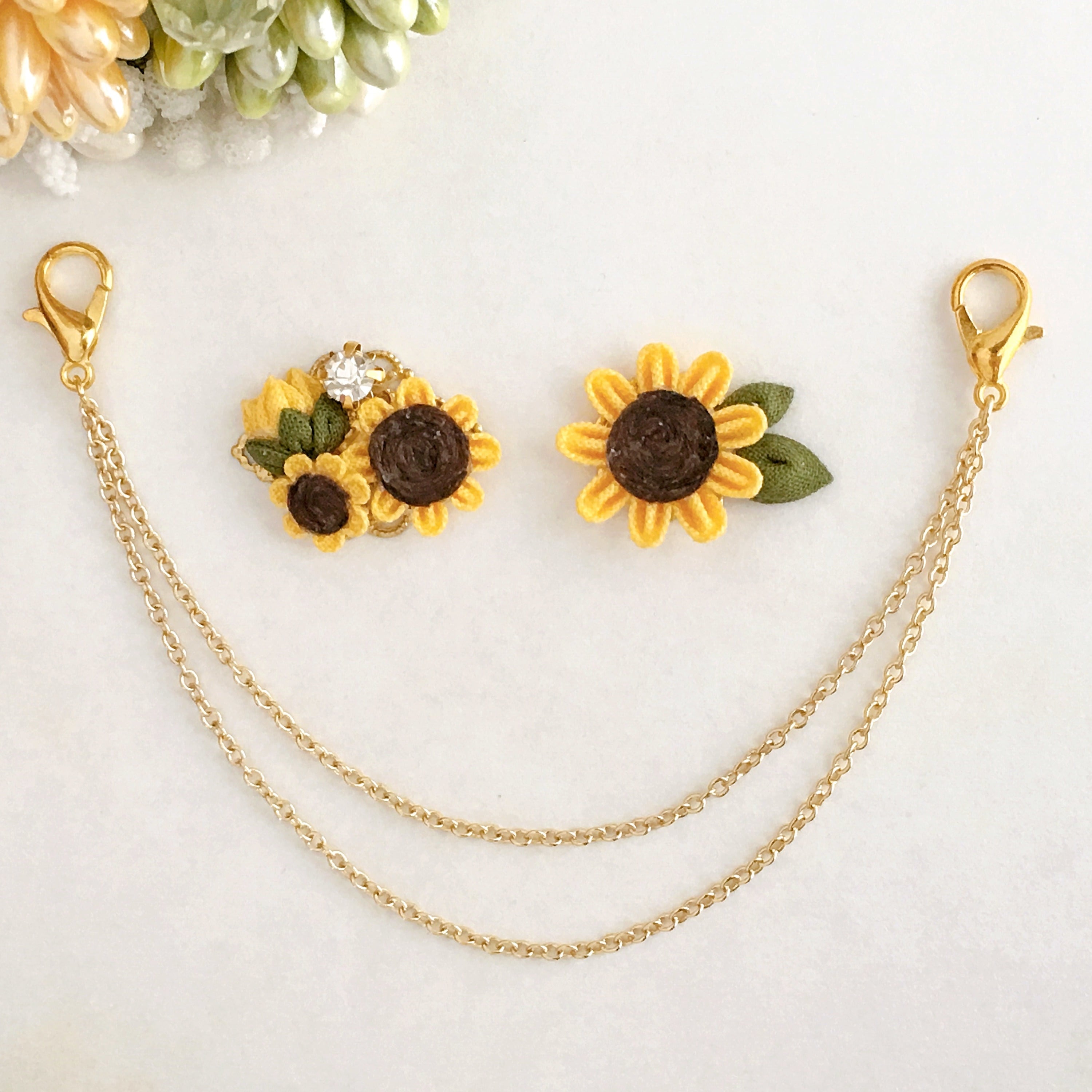 ひまわりの襟ブローチ