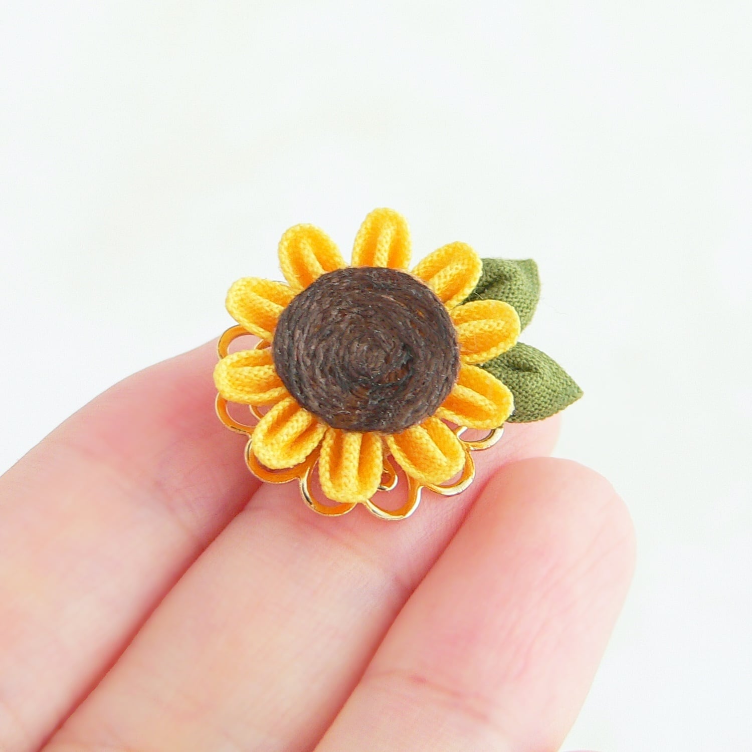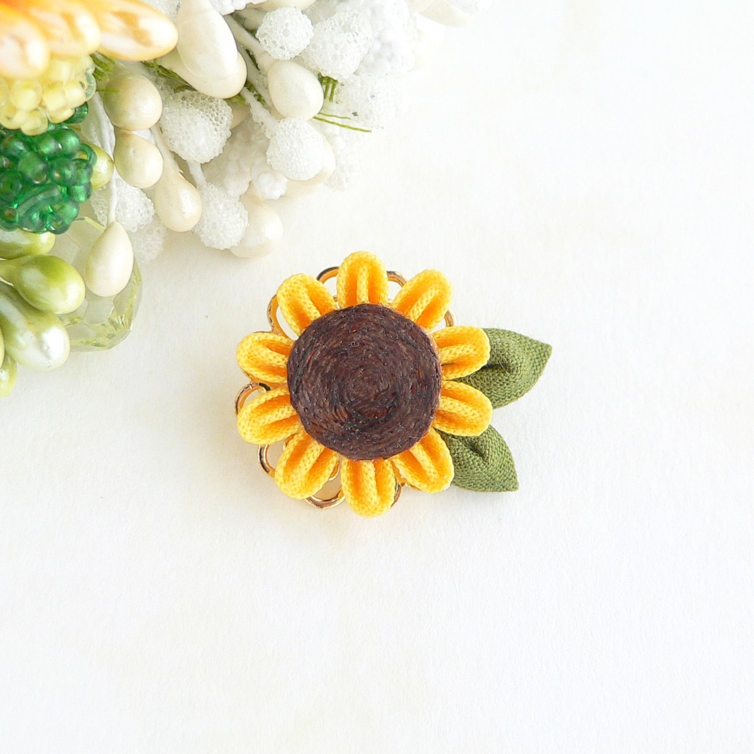 【 つまみ細工 ひまわりのミニブローチ・マスクチャーム 】---ブートニエール/襟ブローチ/ラペルピン/ピンバッジ/ピンバッヂ/チョウタック/タイタック/ピンズ/フラワー/誕生日/記念日/プレゼント/成人式/入学式/卒業式/結婚式/ブライダル/パーティー/着物/浴衣ヒマワリ/向日葵